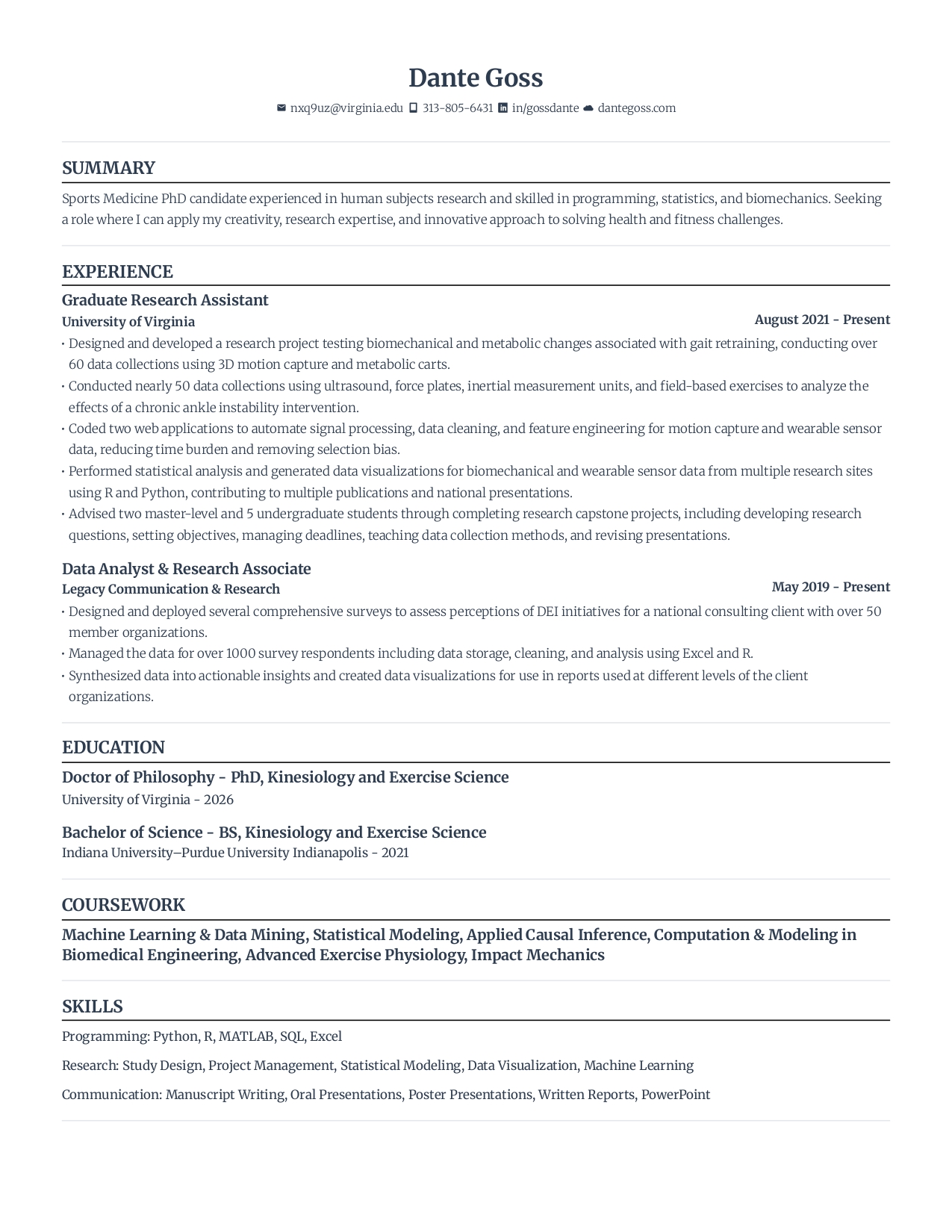 This is my current resume detailing my education, work experience, skills, and relevant coursework.